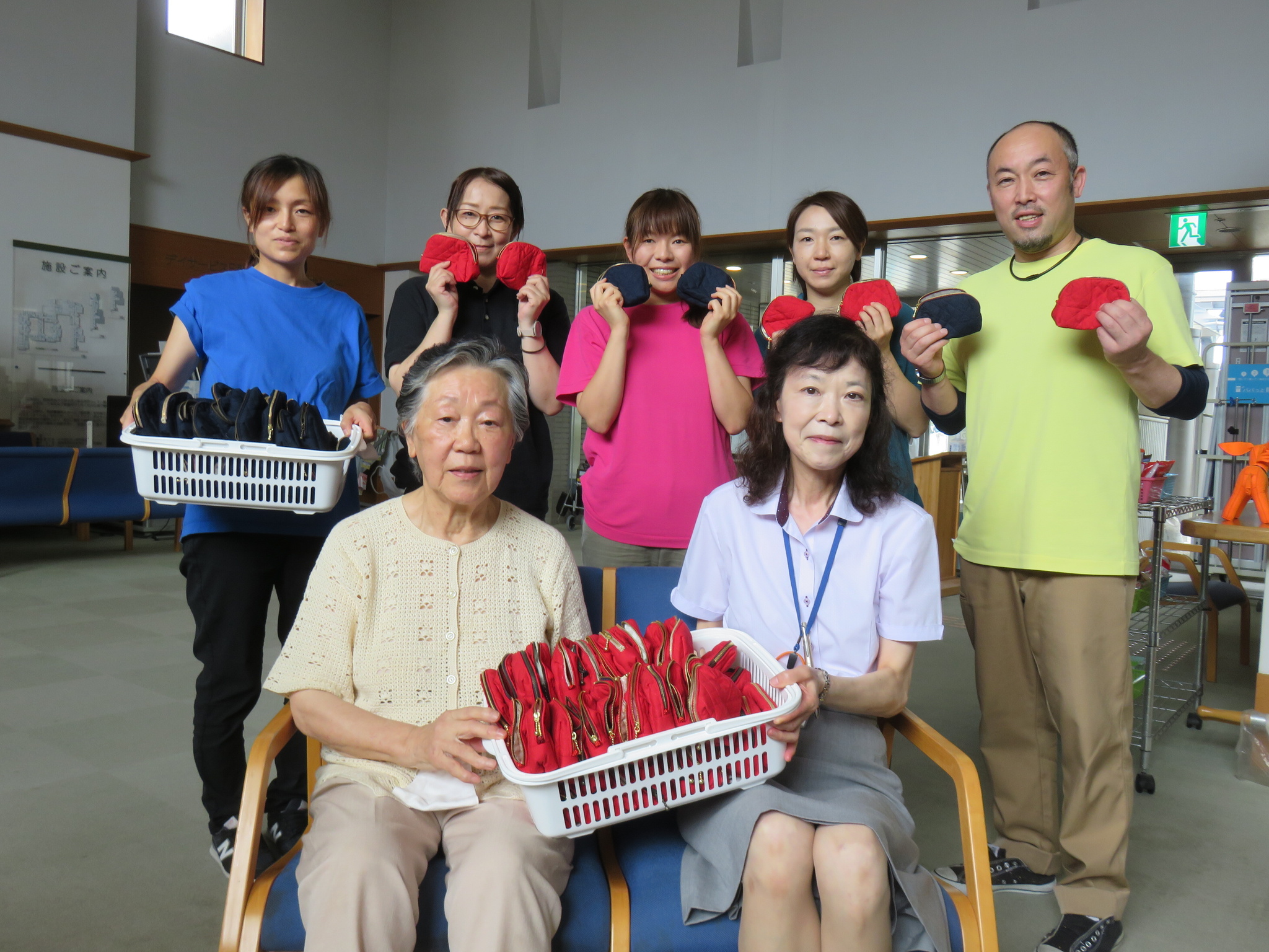 先月、区内にお住いの鈴木幸子様から、福寿園の職員へ手作りポーチのプレゼントを